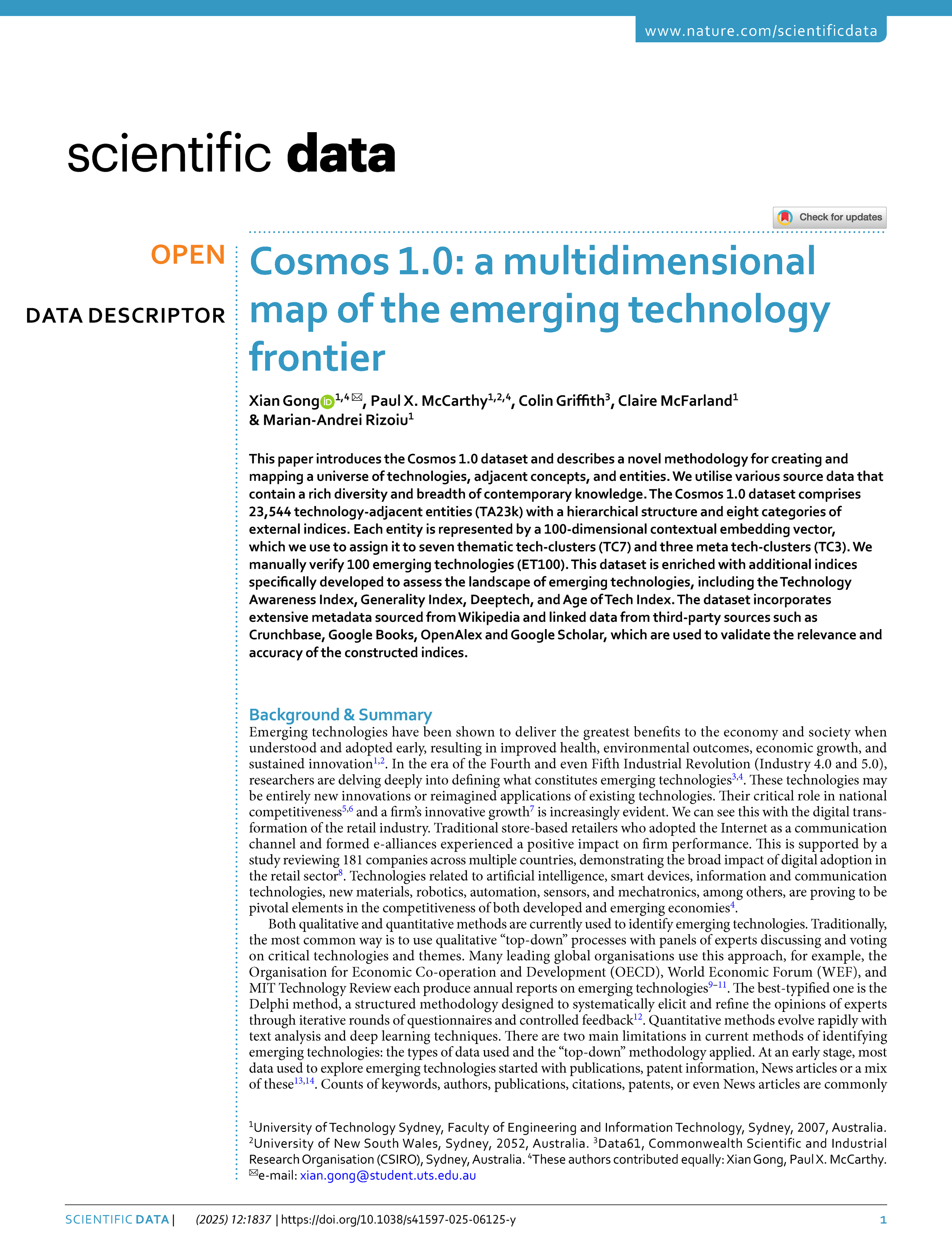 A bottom-up mapping of the entire technology landscape using machine learning to identify over 23,000 technologies. This provides a framework for granular benchmarking of comparative advantages in skills, research, and startups.